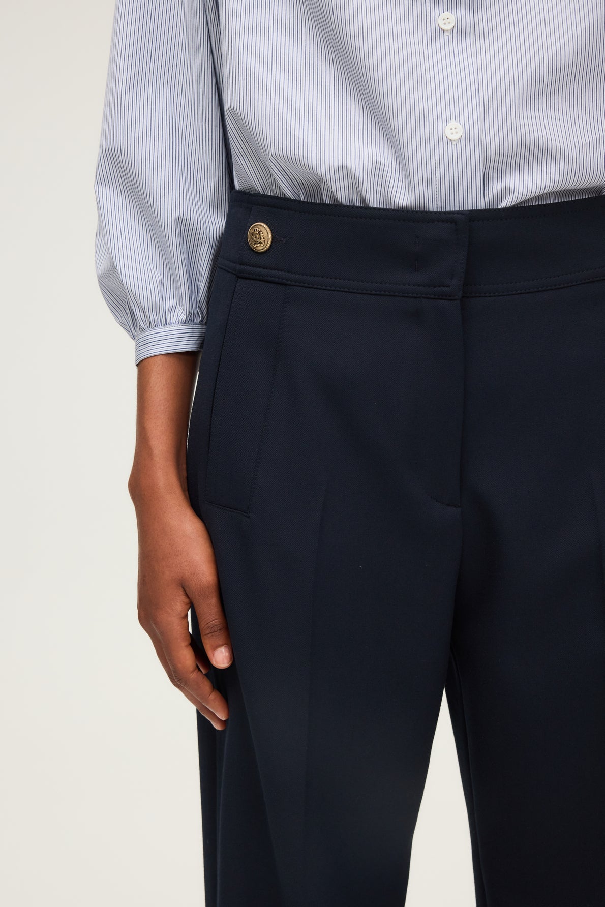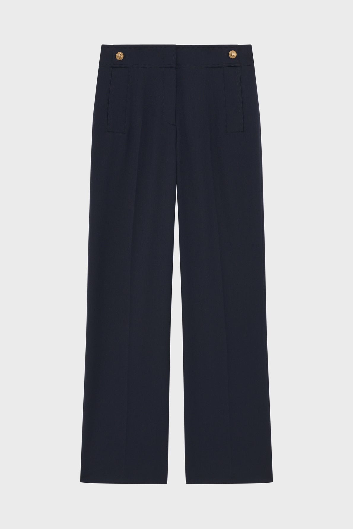 The Callysta pants stand out with their high waist adorned with nautical buttons in a bridge trouser style. Wear with the matching jacket for a tailored look.