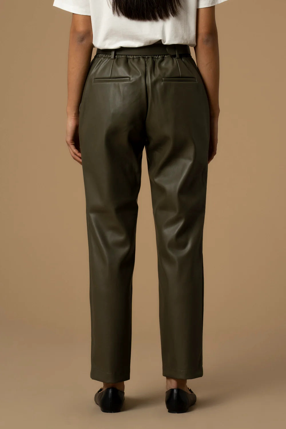 CHIC PROFESSIONAL RELAXED FIT LEATHER LOOK TROUSERS - TROUSERS MARITUSA