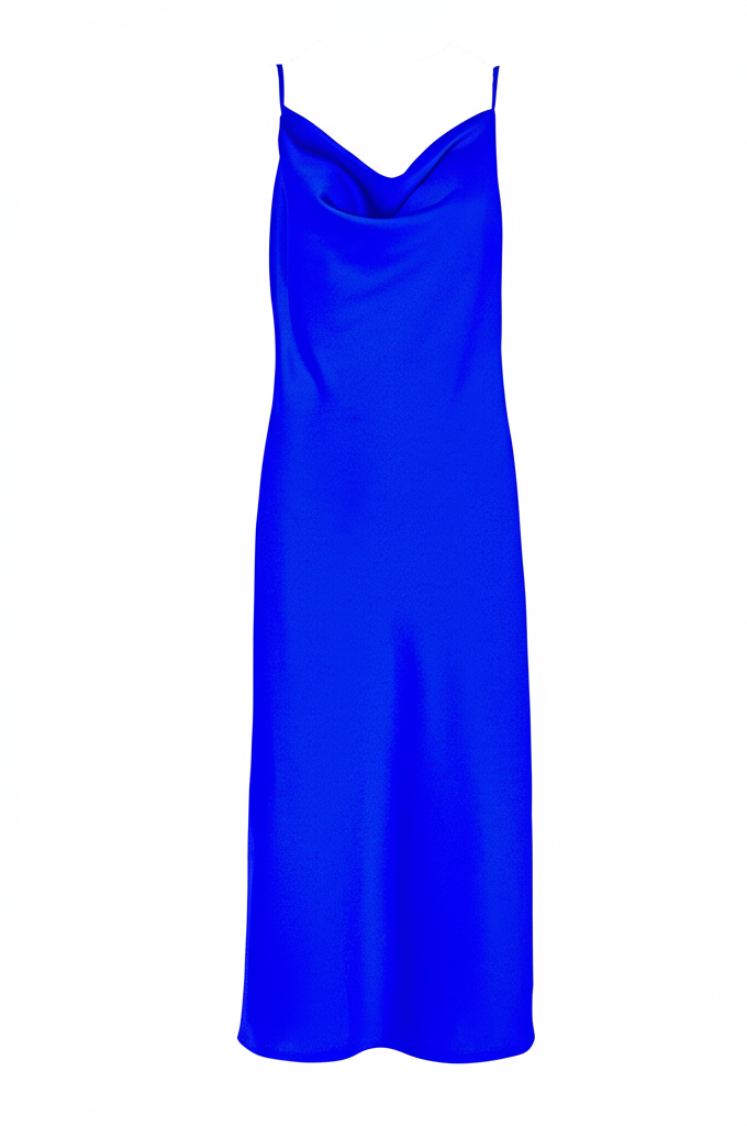 Draped maxi dress, with straps, side slit, regular fit, satin texture