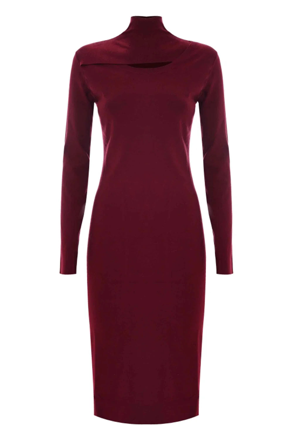 ELEGANT SLIMLINE HIGH NECK SWEATER DRESS - DRESS AREZIA