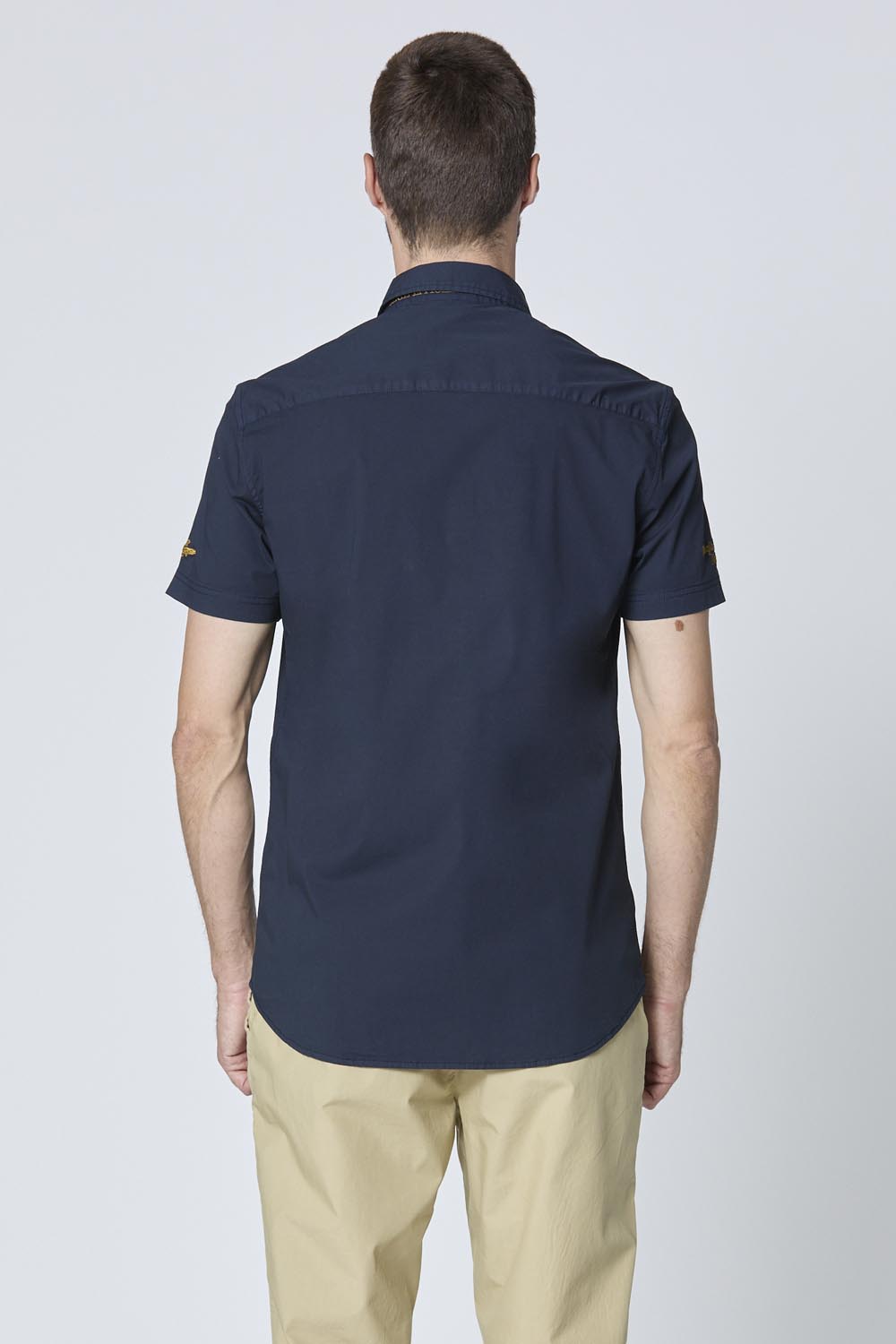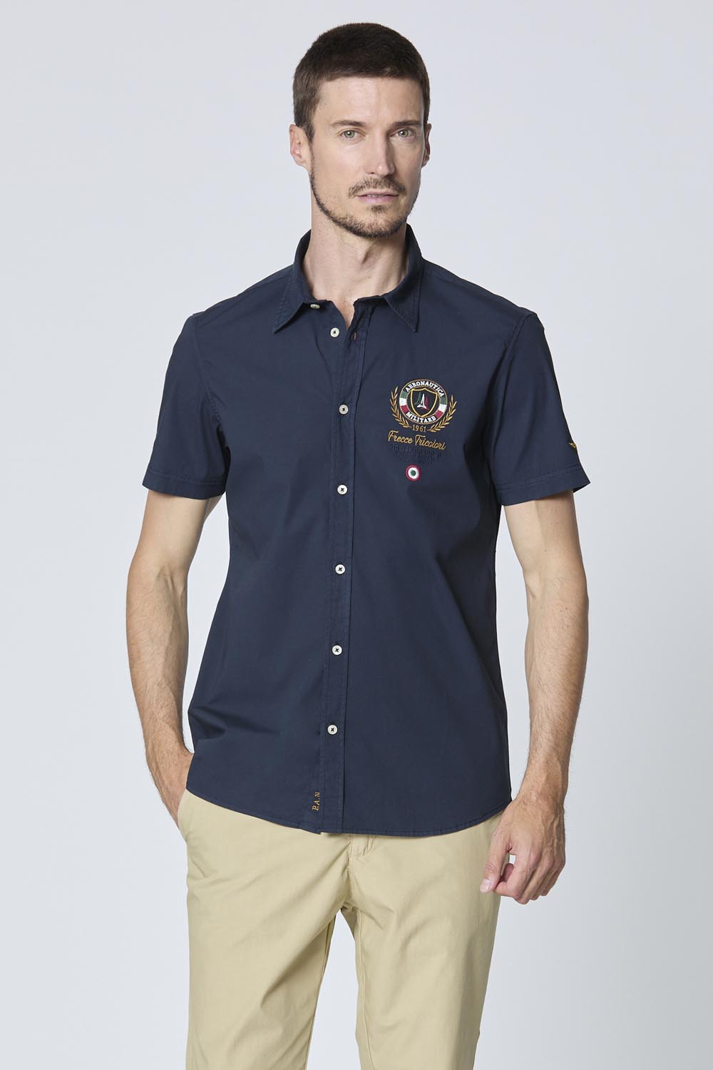 A tribute to the excellence of the Frecce Tricolori, this short-sleeve poplin shirt combines sporty casualness with a bold, celebratory character. Featuring intricate embroidery across the chest, sleeves, hemline, inside the collar and in the undercollar, it's a unique piece for those who wear their Italian pride on their sleeve.
