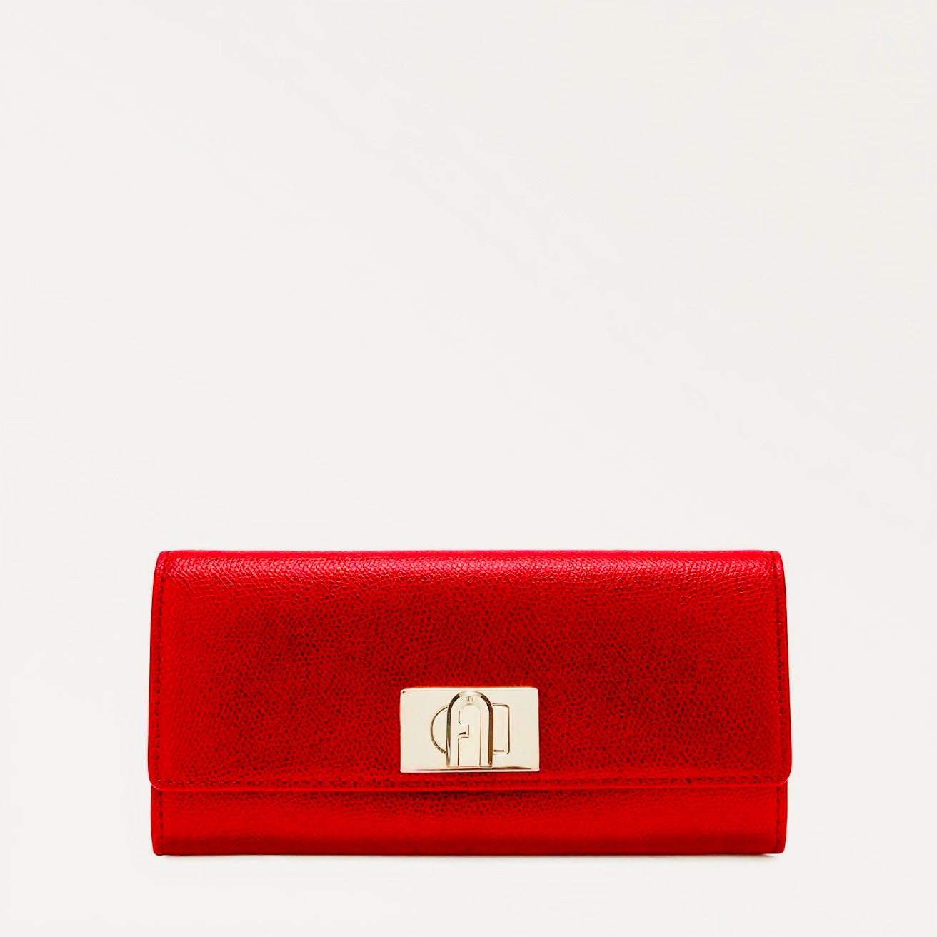 The Furla 1927 wallet comes with wide volumes and is made of elegant textured leather. It features a bow-shaped metal turnstile closure with Furla logo engraved on the front. The model comes with ten credit card slots; two note compartments and one coin pocket with holed zip. The accessory is perfect for storing all your belongings and documents.