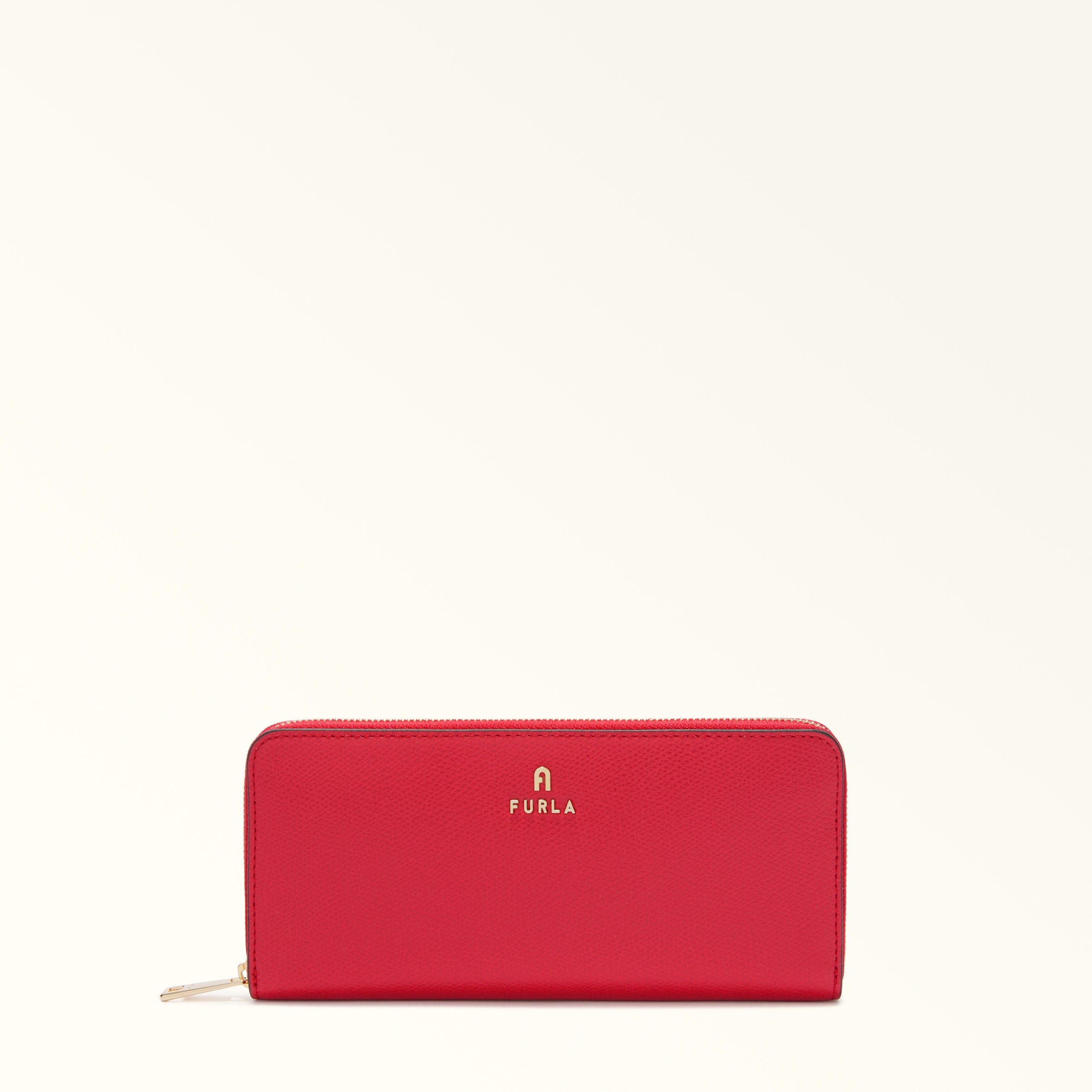 This Furla Camelia continental wallet is elegant and spacious, styled in luxurious printed leather and adorned with the iconic Furla Arch logo punched on the front. The interior provides enough space to hold your cash, receipts and credit cards in appropriate slots and compartments, while the outside features soft lines and rounded corners with a zip-around closure. Super-slim, and designed to be easily stashed in any bag.