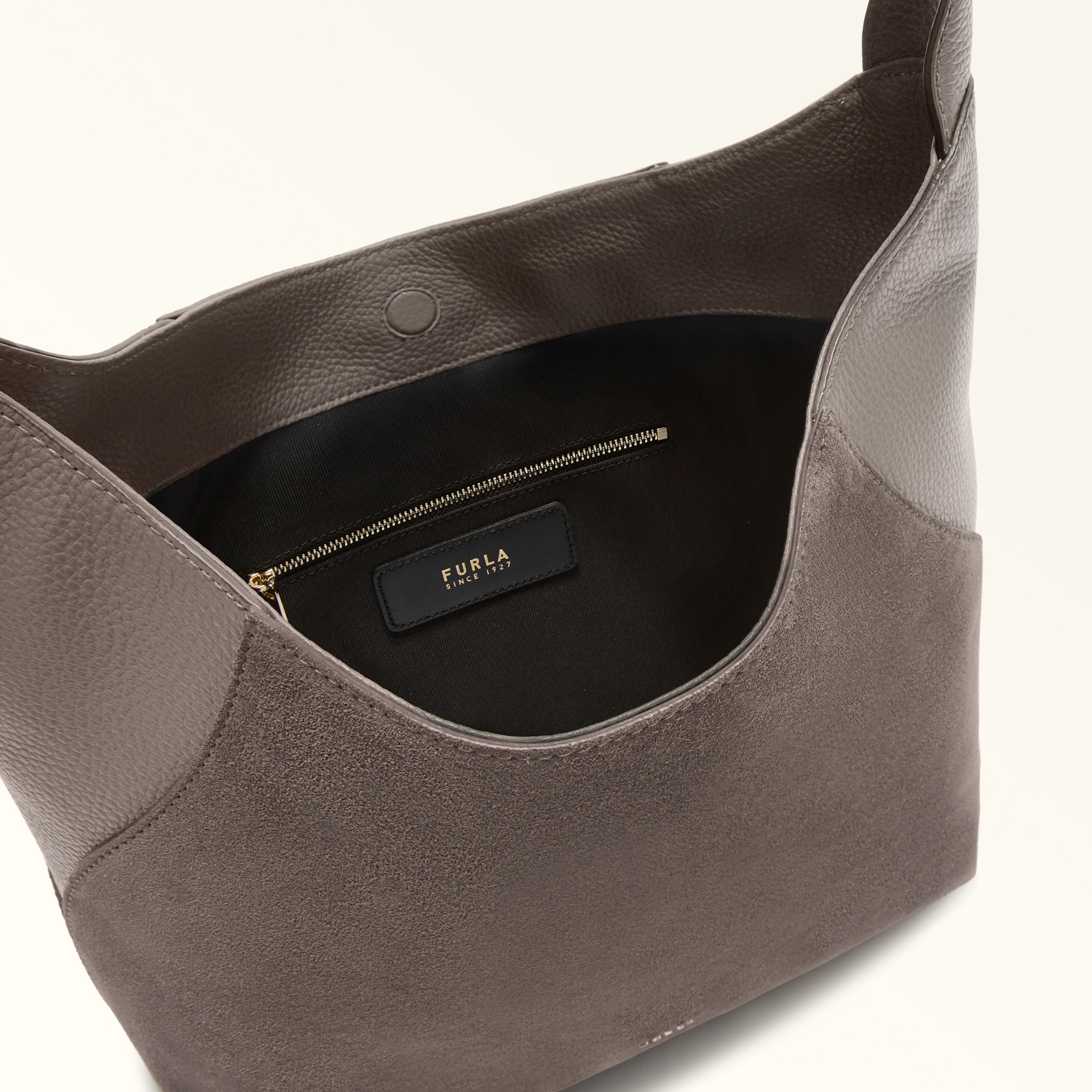 The Furla Lara hobo bag is the perfect accessory for work and play. Crafted from an elegant blend of suede and smooth calfskin leather, it is embellished on the shoulder strap with the iconic Arcosfera logo in metal and has all the space you need for your personal belongings.