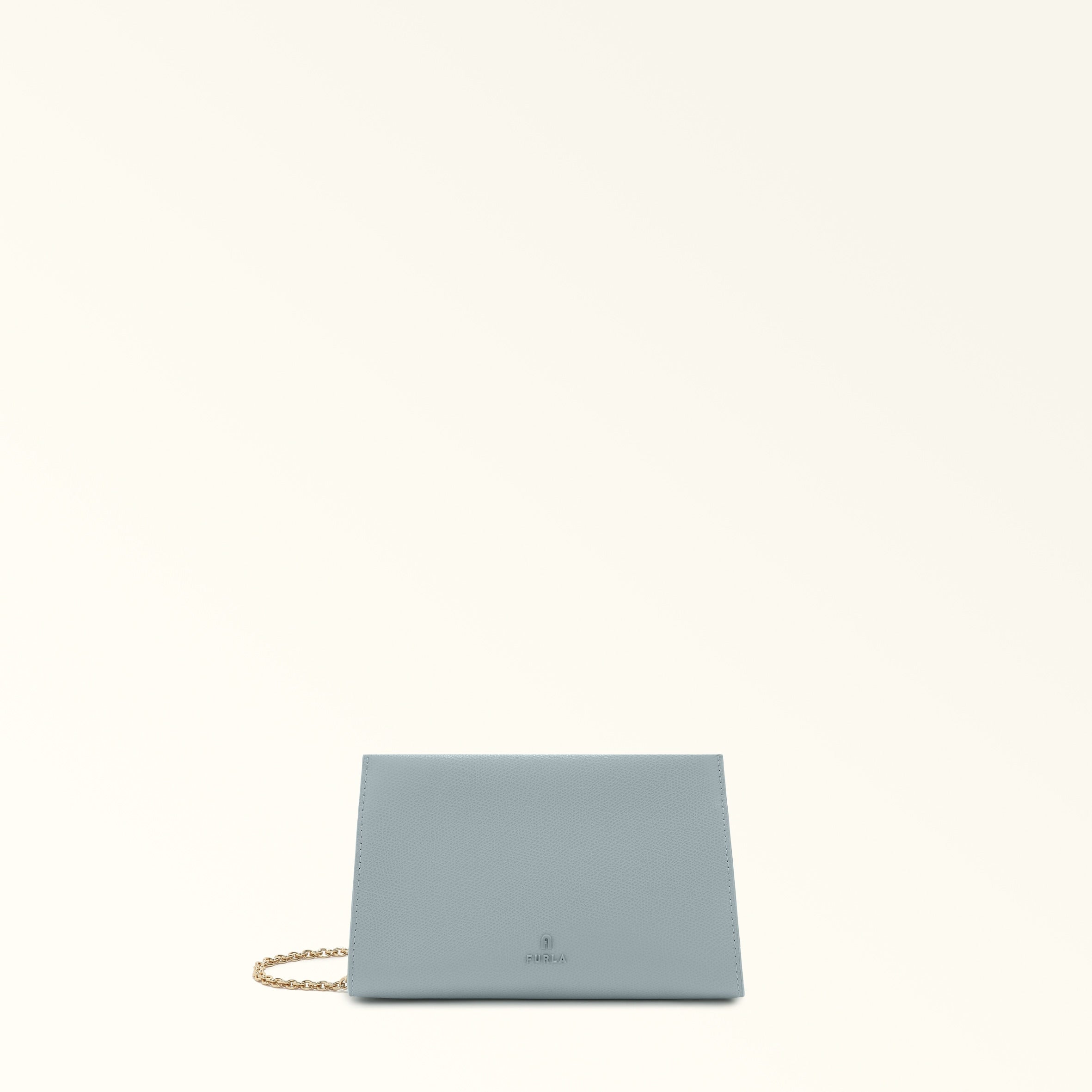The Furla Myfurla clutch delivers elegant style in miniature form. Made from print-textured leather, it stands out for its geometric trapezoid shape. The chain shoulder strap with leather sections is removable, allowing you to wear it crossbody or carry it as a sophisticated clutch.