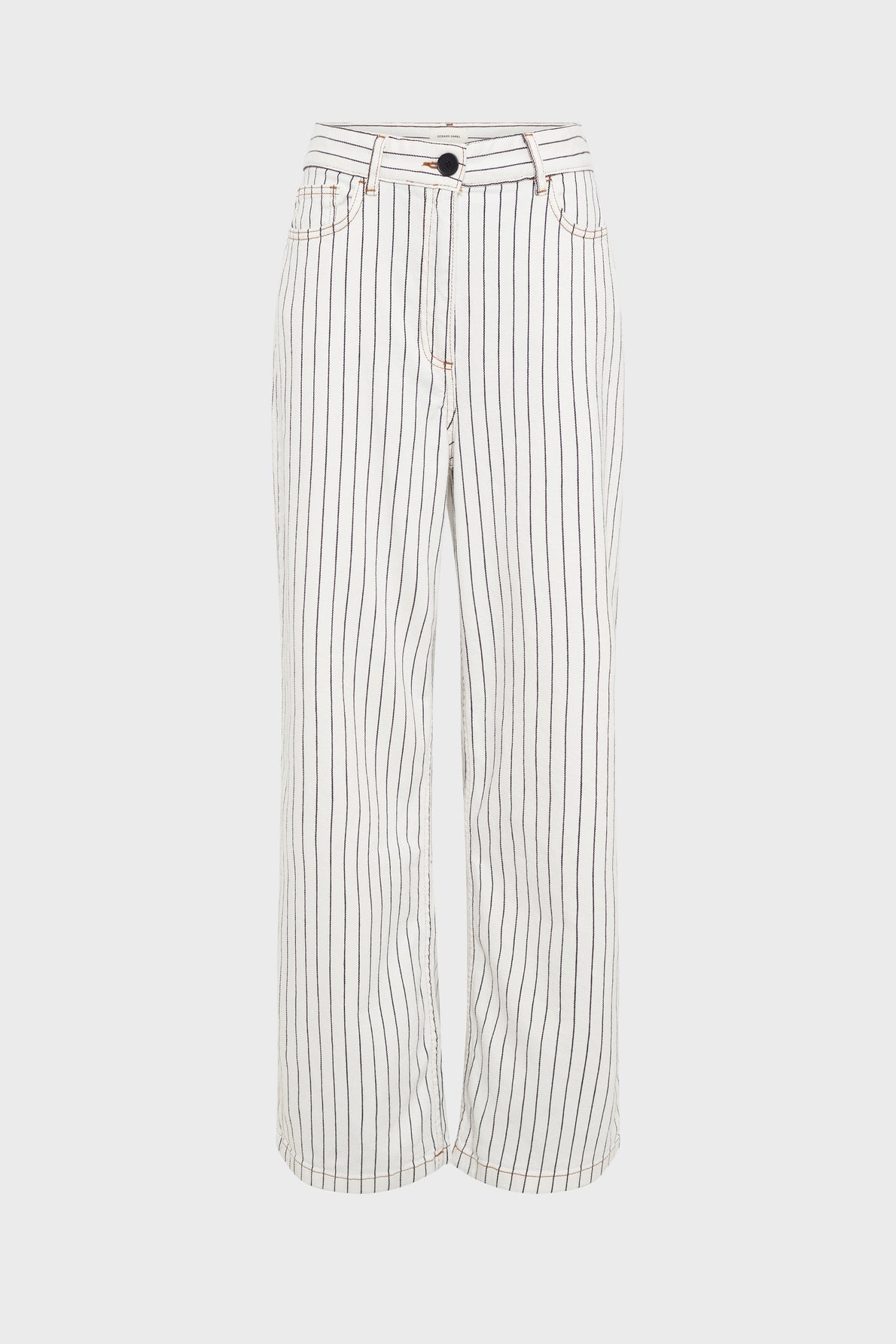 These wide-leg cotton jeans feature subtle black stripes on a white background for a graphic look. Wear them with the matching jacket for a chic and contemporary style.