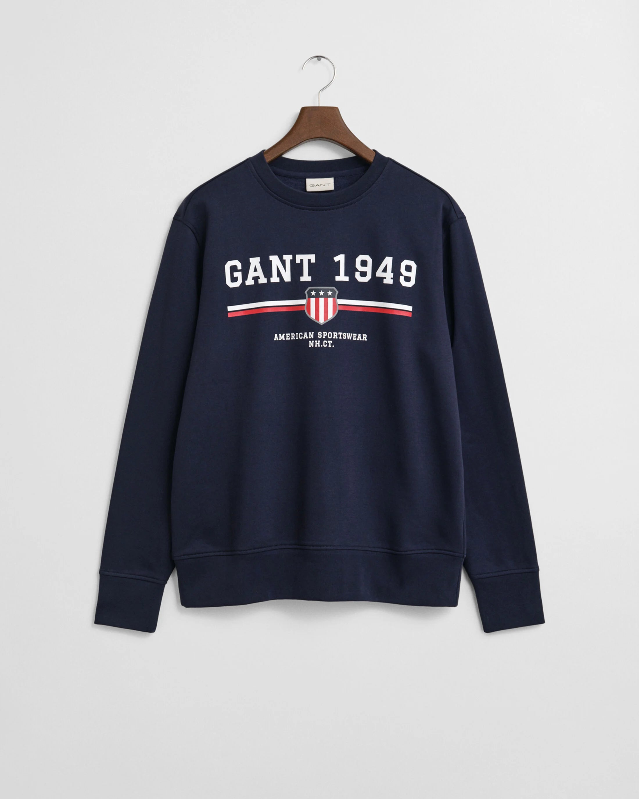 Soon to become your everyday staple, this casual sweatshirt has been crafted from a comfortable cotton-rich blend in a regular fit. It is complete with a classic crew neck, rib endings and a seasonal GANT graphic printed at the chest.