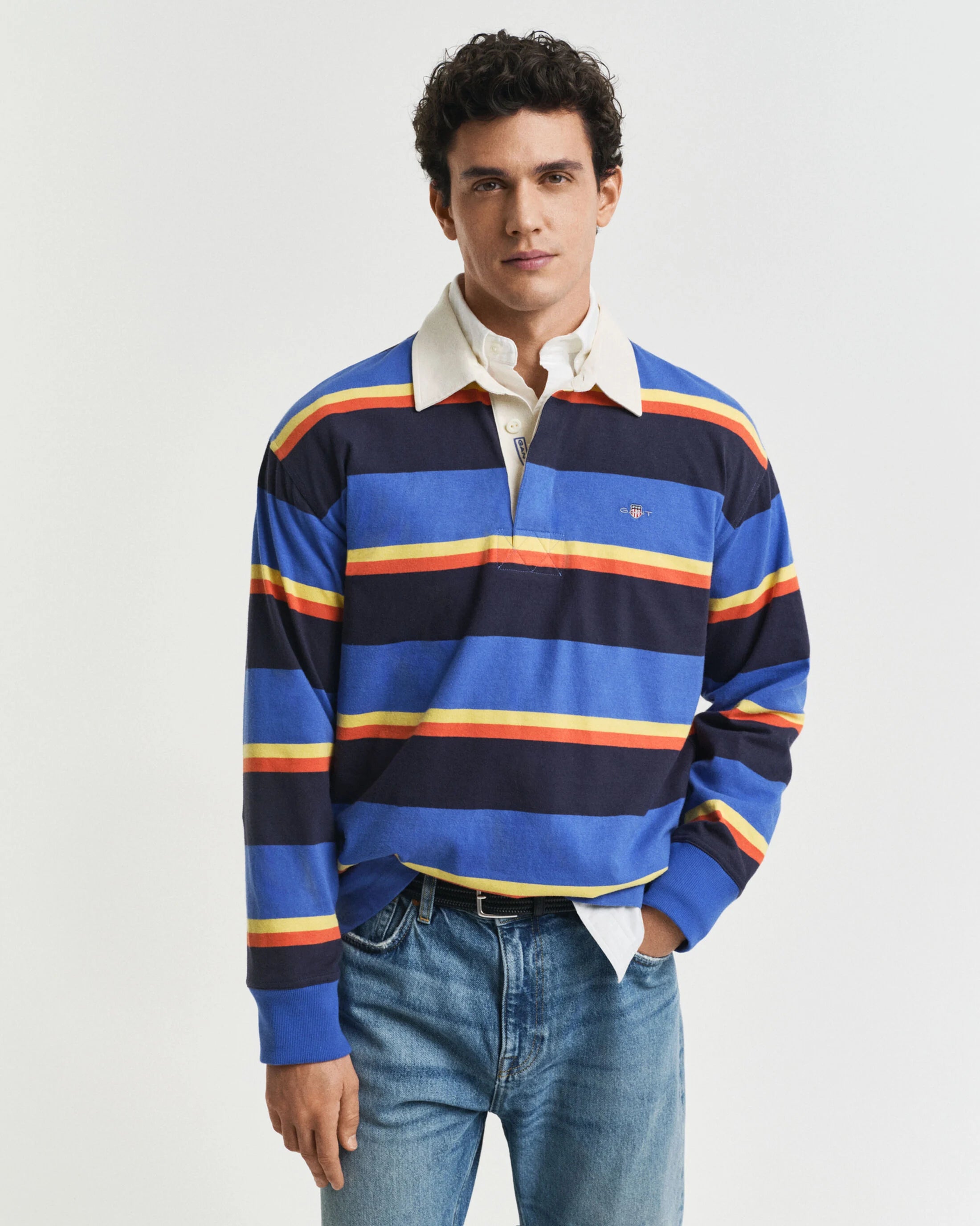 A preppy icon with roots in rugby, the Heavy Rugger's collegiate-cool feel is perfect for almost any occasion. Cut for a relaxed fit and garment-washed for a soft handfeel, this iteration sports a multicolored yarn-dyed stripe design. Crafted from 100% cotton, it features all the classic detailing: a twill collar, ribbed cuffs, a stitched placket with branded rubber buttons and side hem slits. It is finished with our iconic GANT shield graphic embroidered at the chest. This garment is intended for a relaxed fit. For a closer fit, we recommend sizing down.