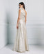 Metallic-effect maxi dress with one shoulder, adorned with feathers. It features a striking cut-out at the waist. Choose it for stunning formal looks.