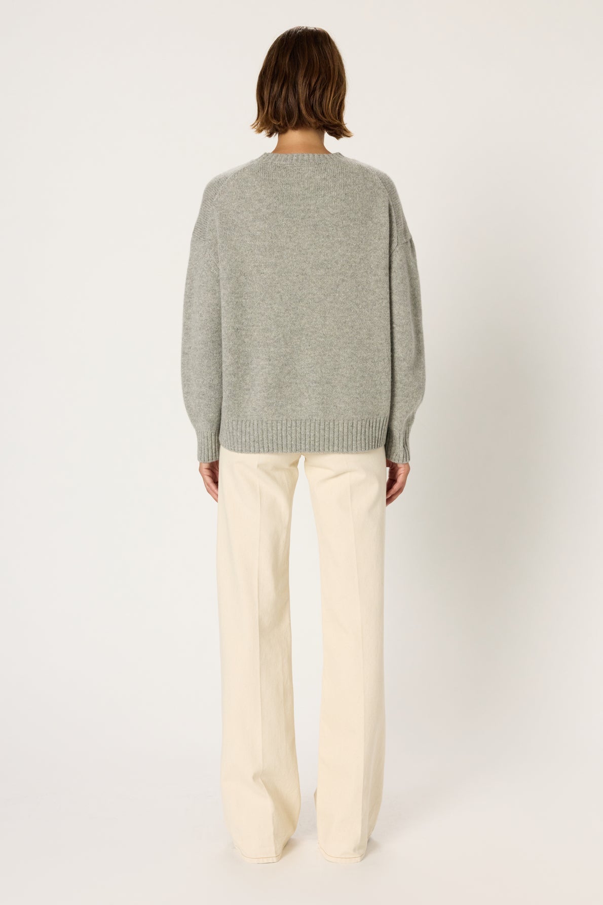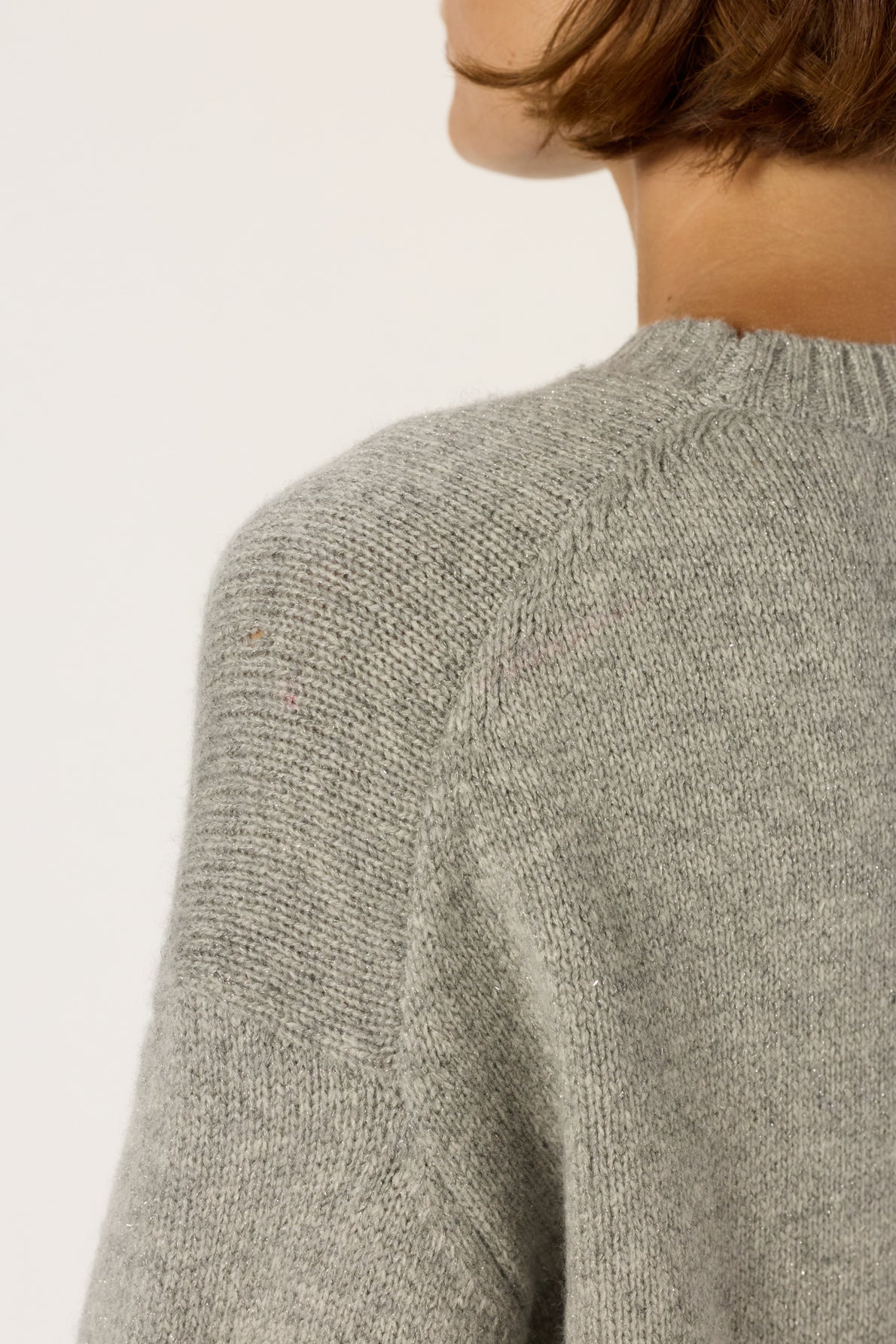 A chic and casual spirit characterizes the Elyne sweater with its oversized cut and adorned with silver lurex. It is crafted from wool with a hint of cashmere to provide greater softness.
