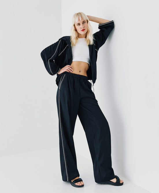 High-waisted pants with contrasting details and an elastic waistband. Pair them with the matching bomber jacket from our collection for trendy looks.