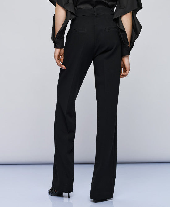 High-waist pants with front pleat detail. They feature side pockets and decorative welt pockets at the back. Choose them for elegant looks.
