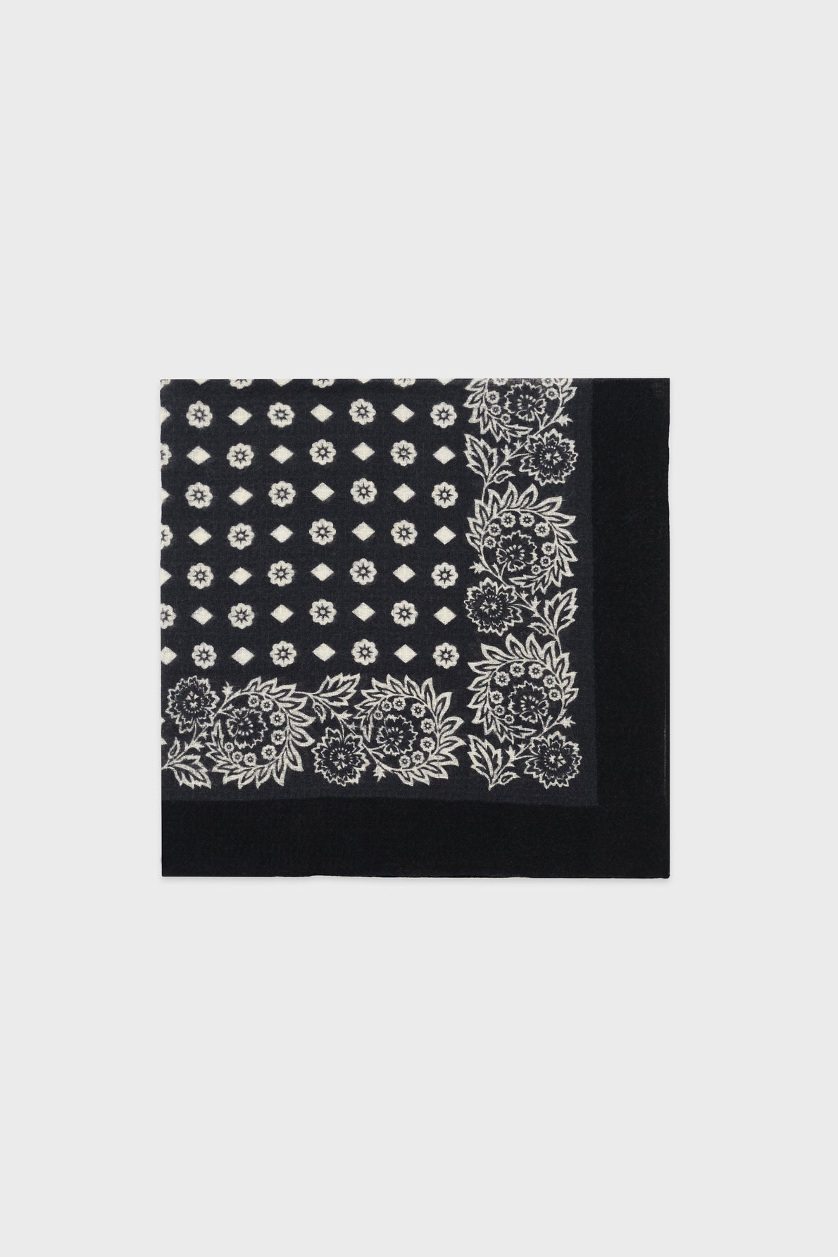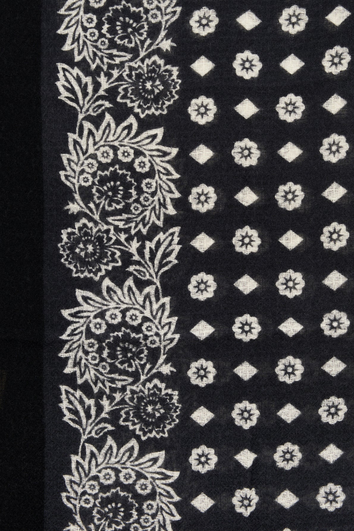A true fashion accessory, the Renelle printed square scarf can be worn pointed or tied tightly around the neck. Crafted from wool with a touch of silk for added finesse and softness, it is available in black and ecru.