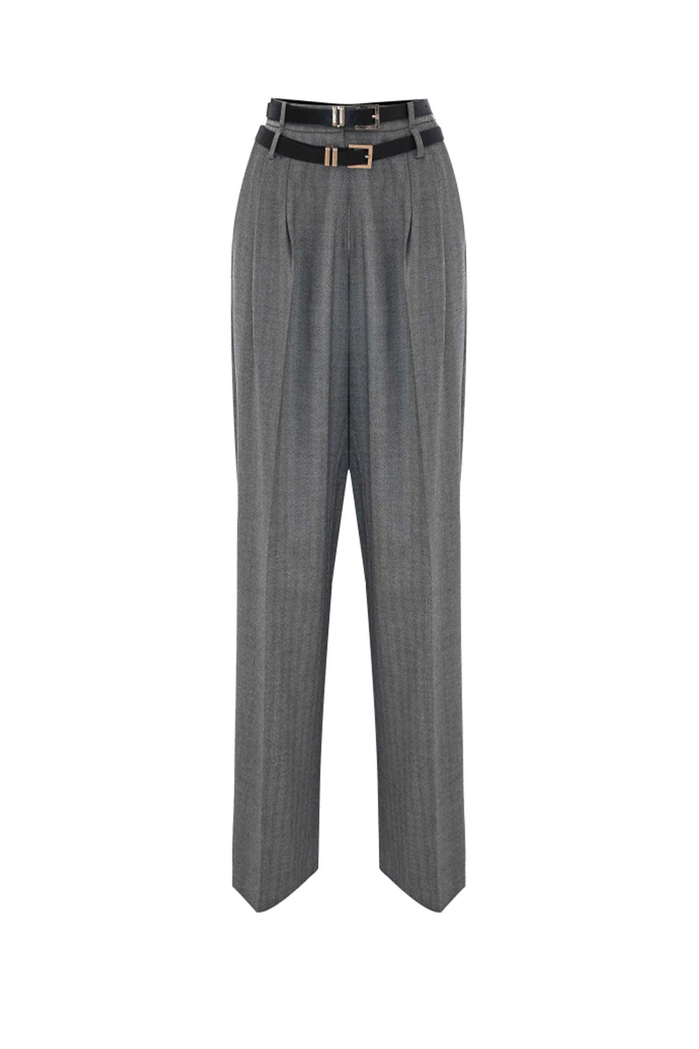 Stylish professional full length trousers, front creases, slight pleats, relaxed fit, sleek twin contrasting color buckled belts, hidden pockets