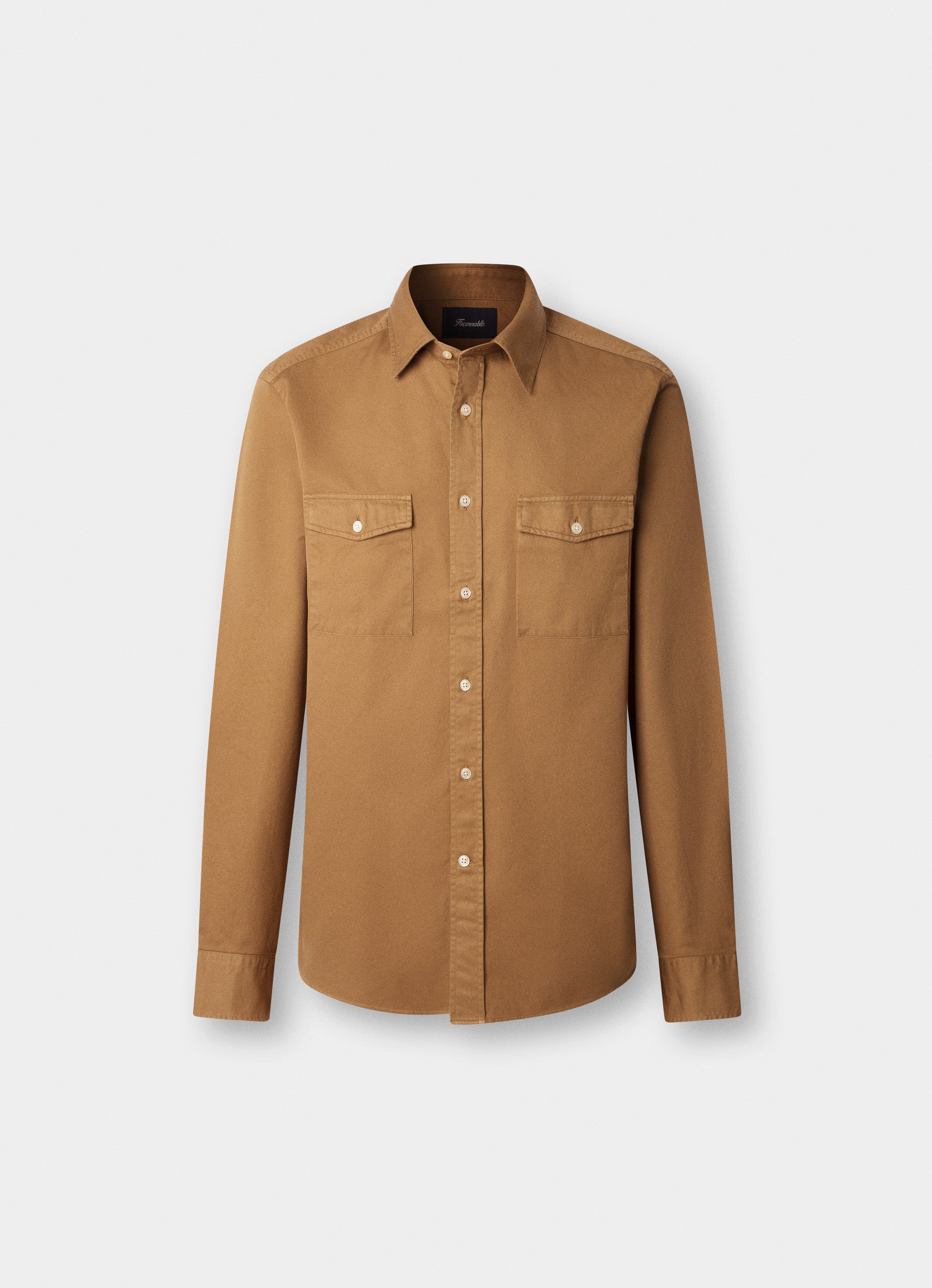 REGULAR FIT GARMENT DYED COTTON TWILL SHIRT