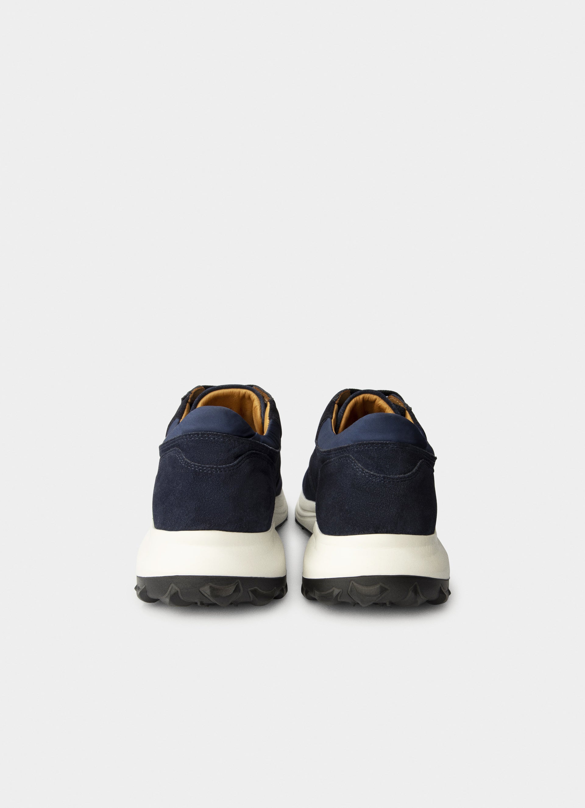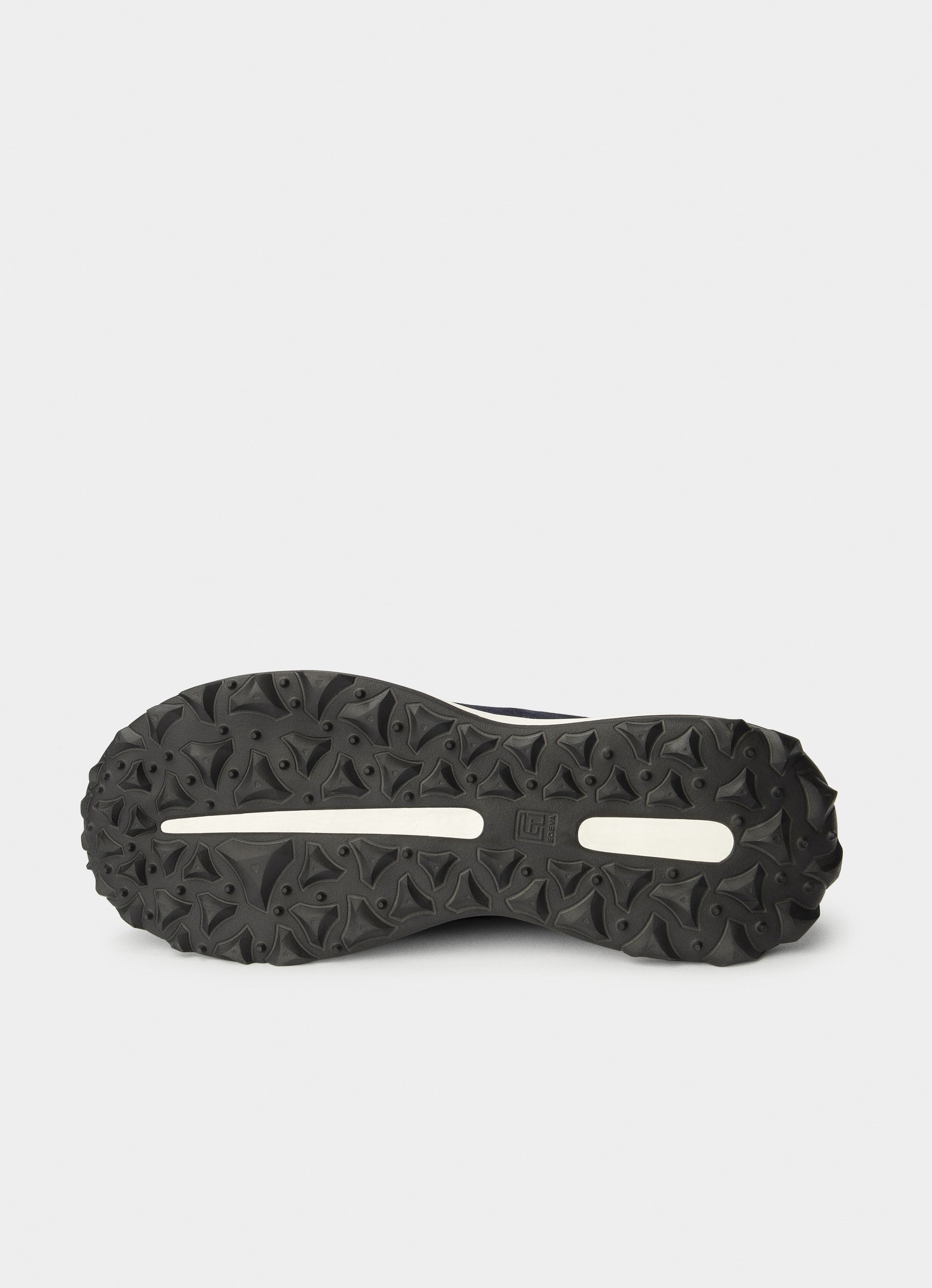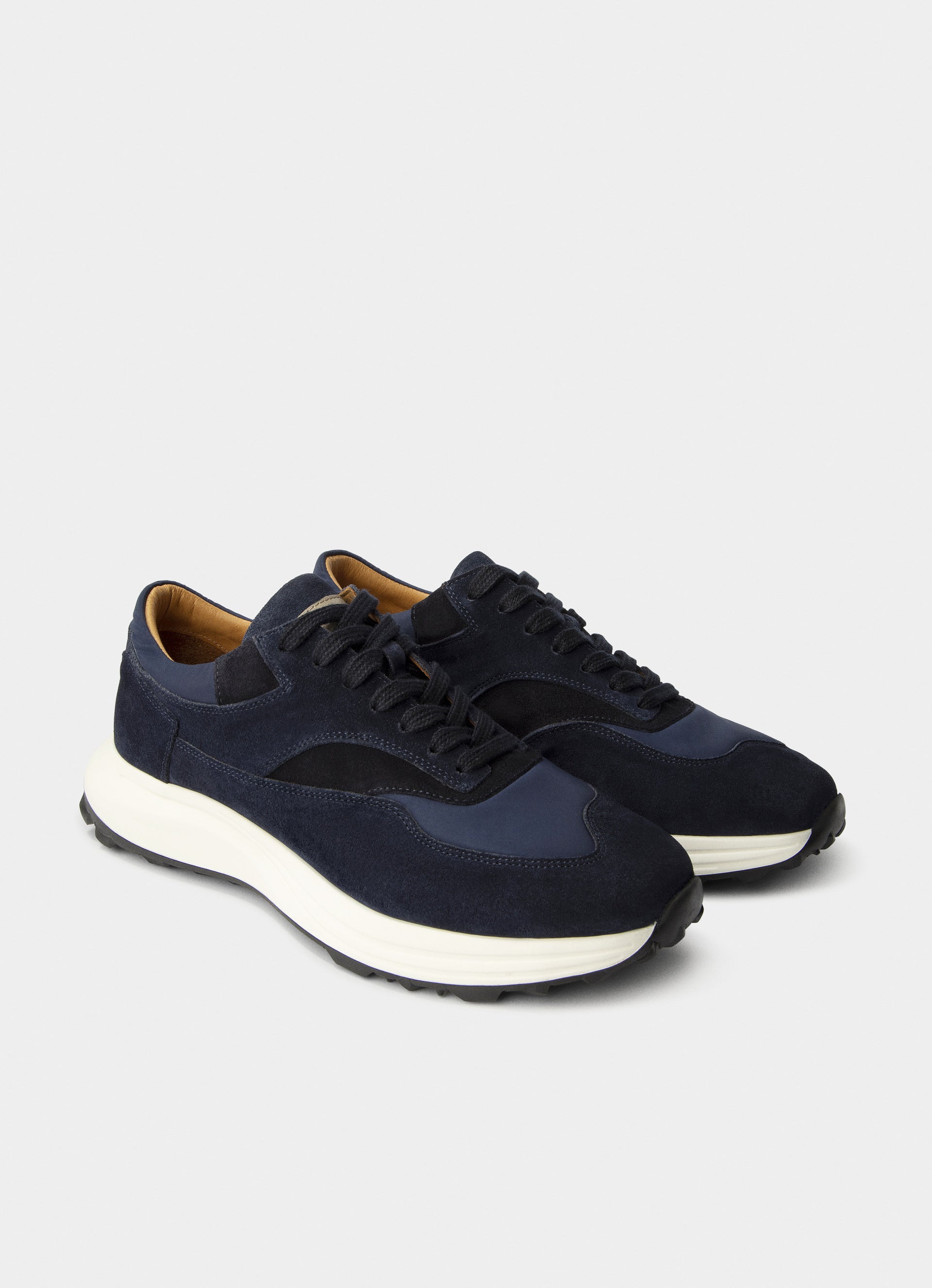 - Suede leather and nylon runner trainer. - Lace-up style. - Leather Façonnable label on the tongue. - Contemporary white rubber sole with black base. - Soft leather insole and interior lining.
