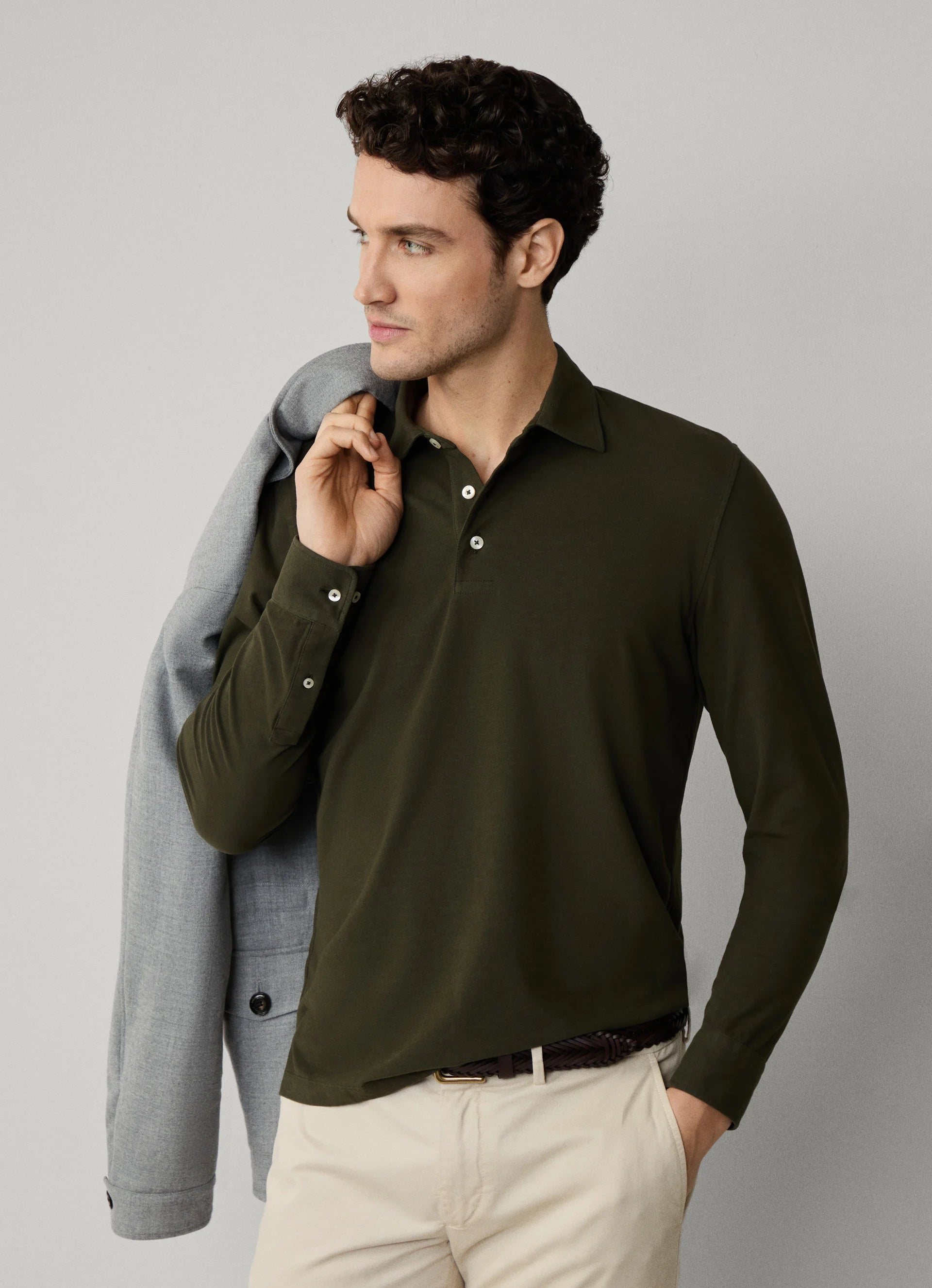 REGULAR FIT LONG SLEEVE STRETCH JERSEY POLO