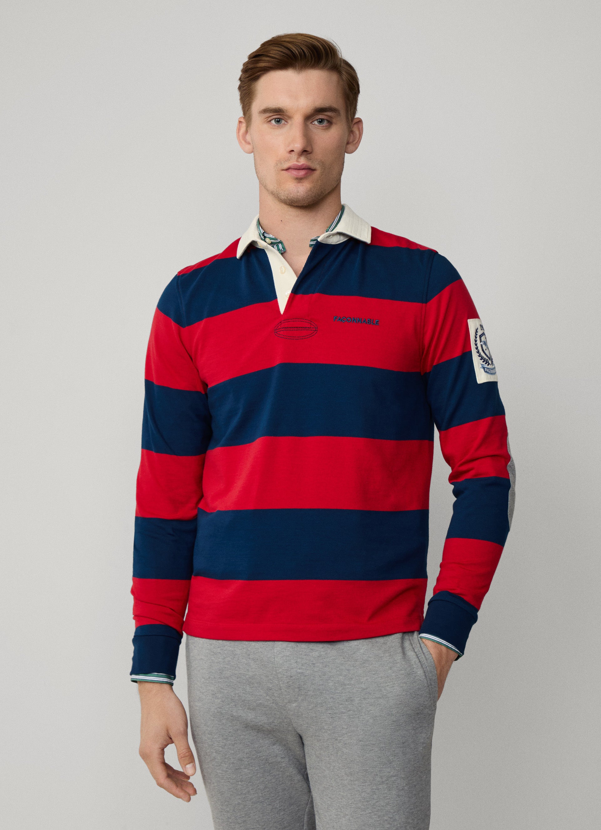 REGULAR FIT LONG SLEEVE STRIPED RUGBY POLO