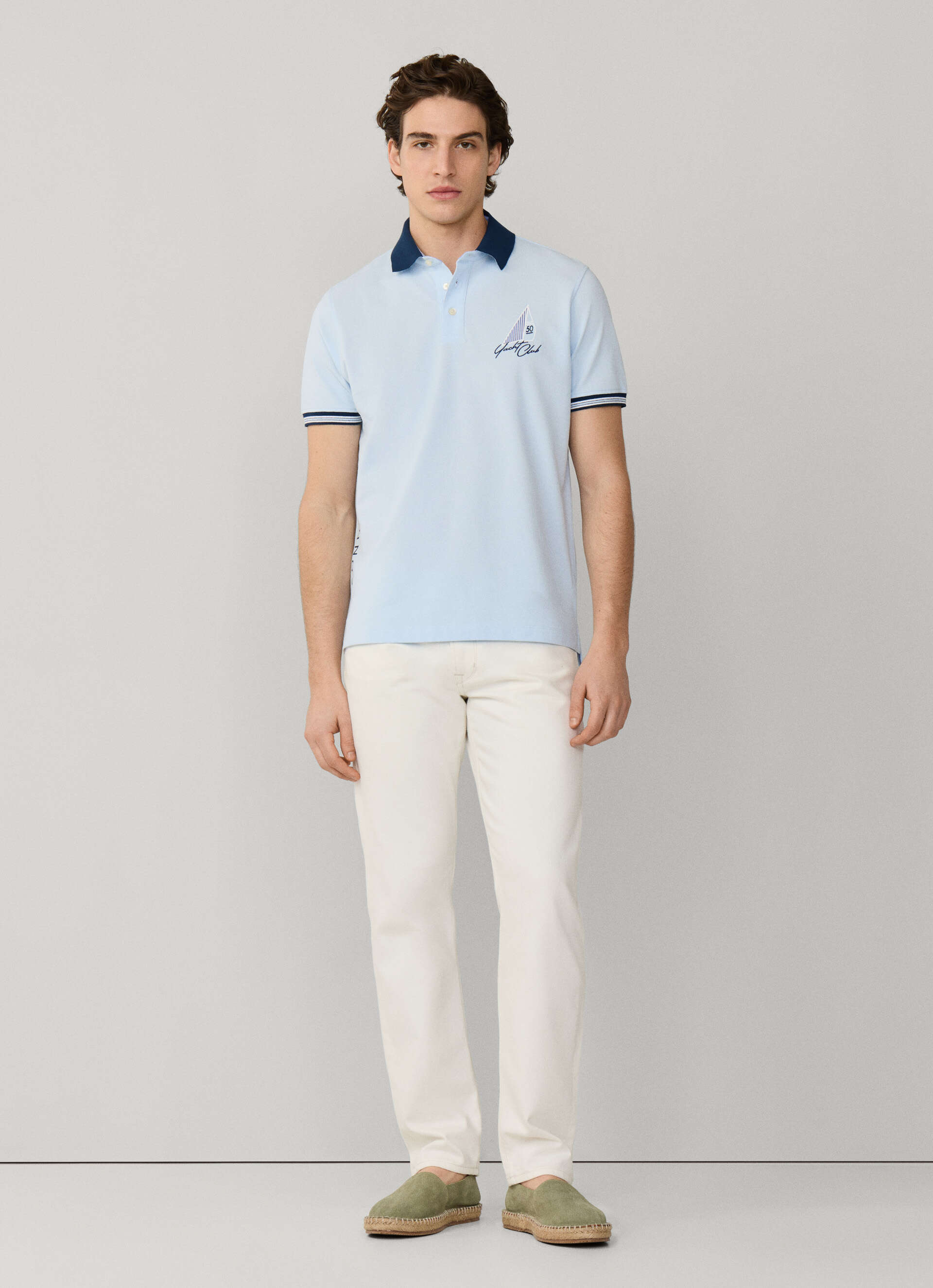 - Embroidered "Yacht Club" and sailing boat design on the chest.