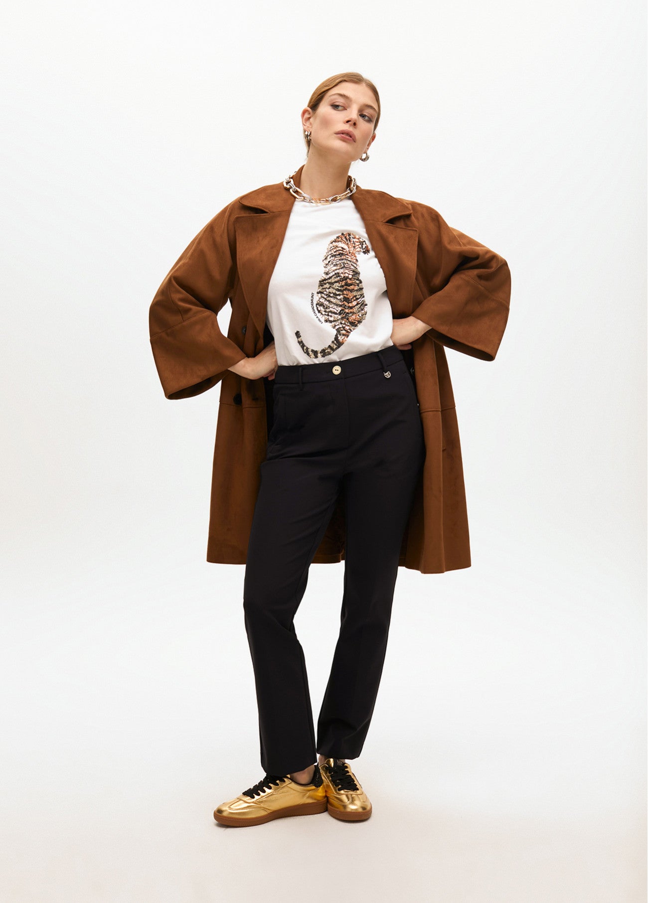 White cotton T-shirt featuring a sparkling tiger design. Straight and comfy fit. Perfect for adding a stylish touch to your daily outfits.