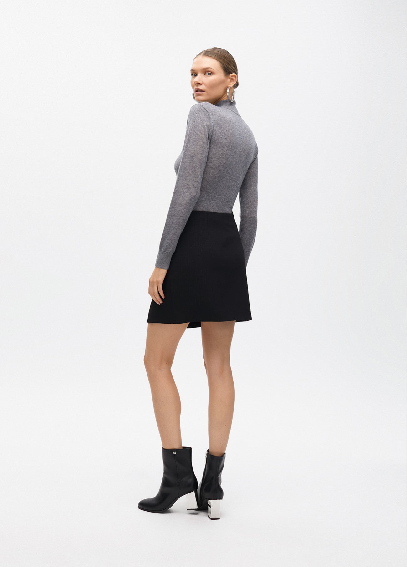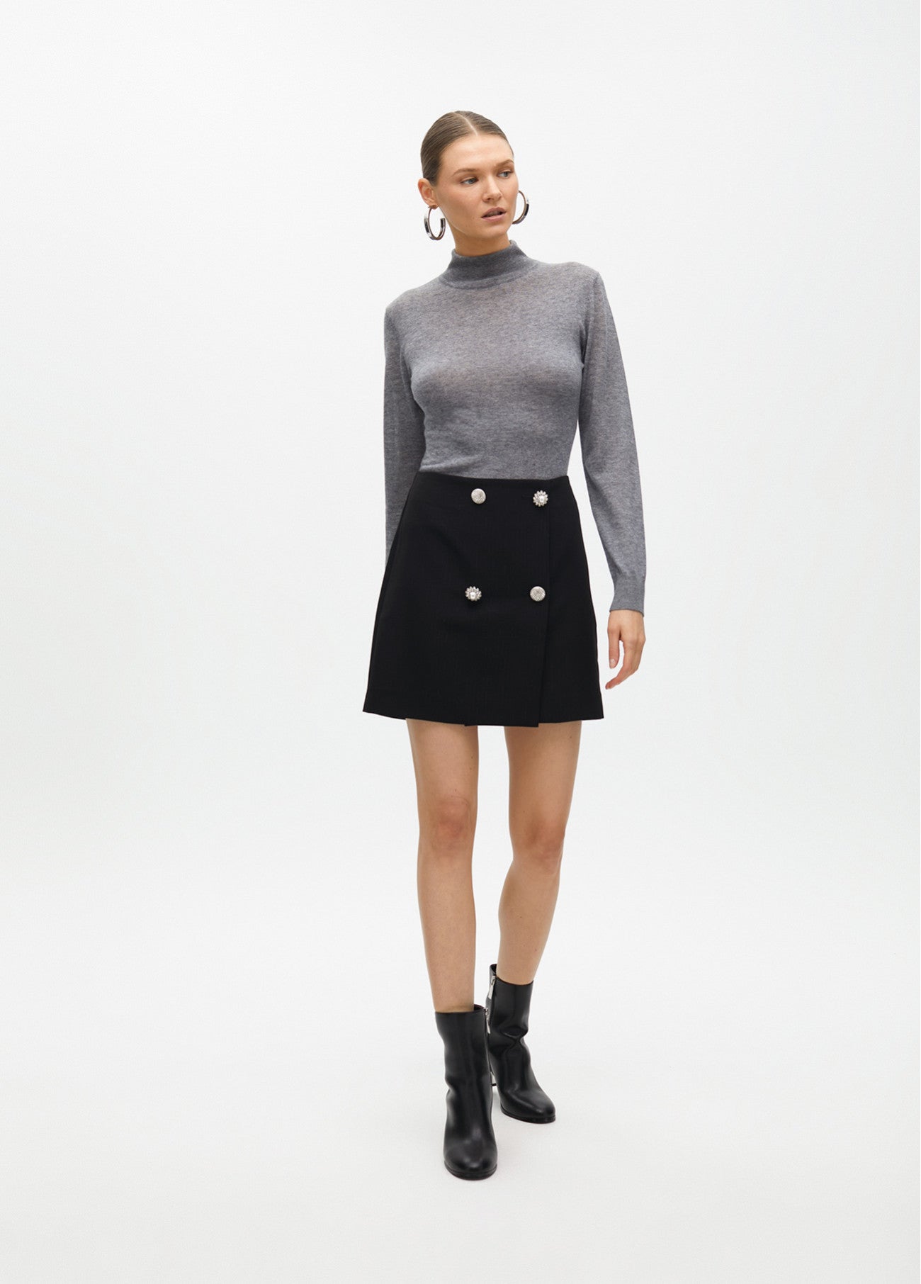 Sophisticated short skirt featuring decorative jewel buttons. High-quality fabric with tailored cut. Discreet side zipper for a perfect fit. Elevate your wardrobe with elegance. Reference MF2508002_00N