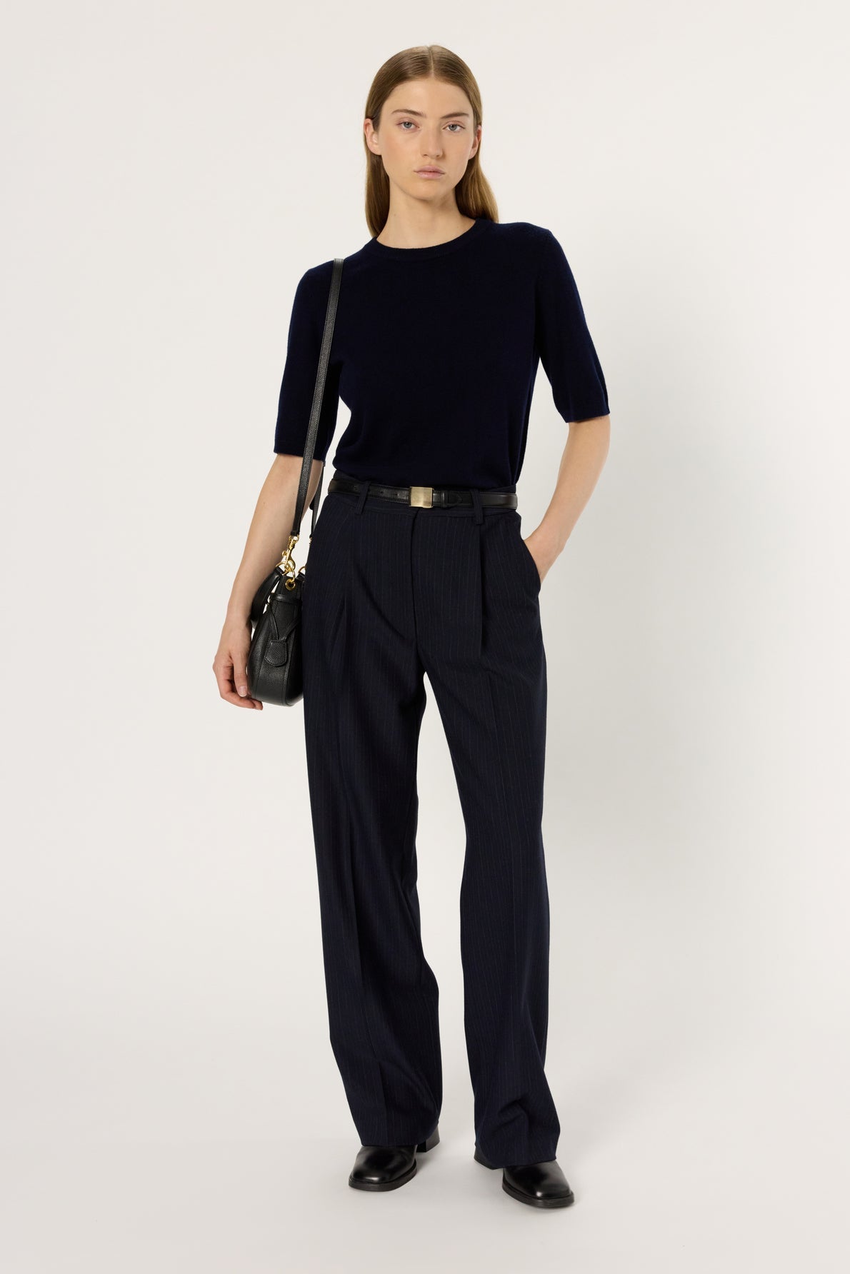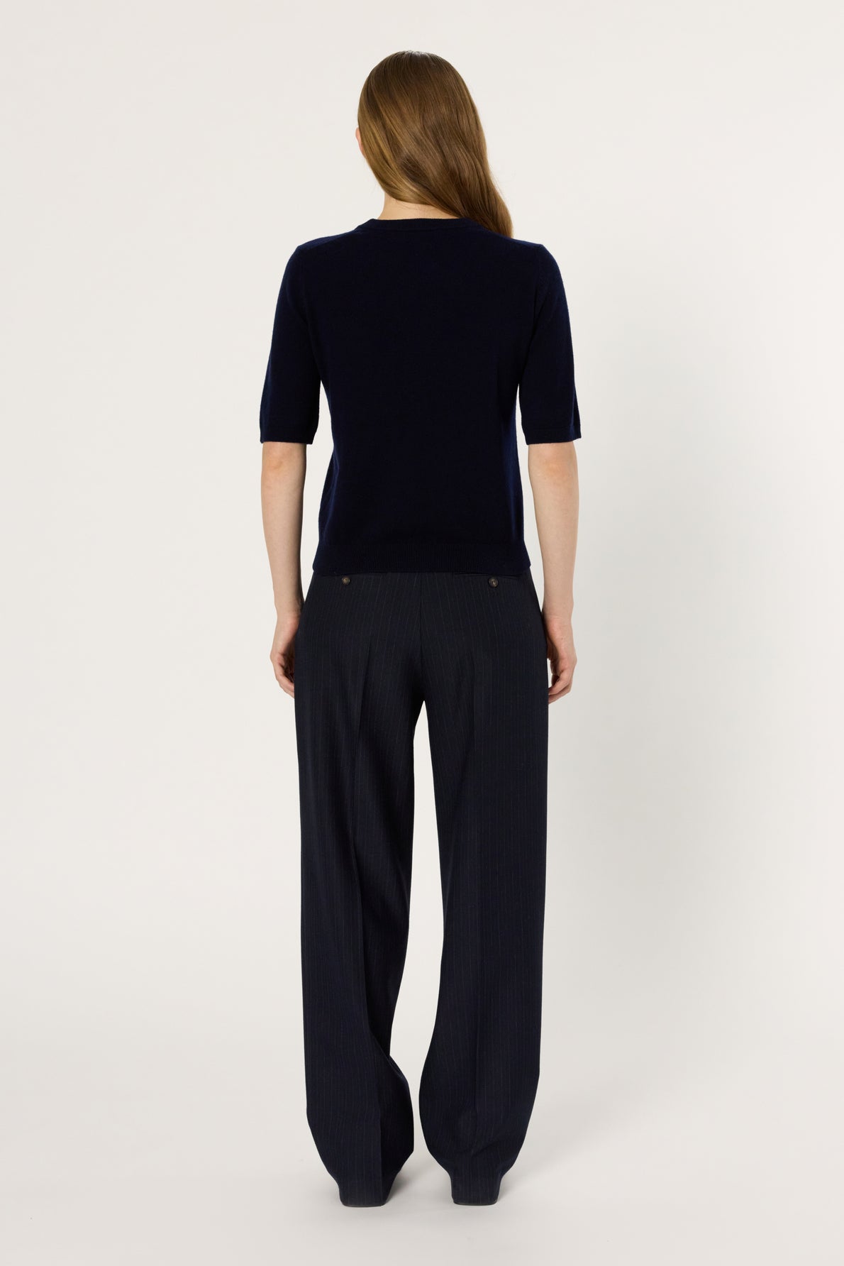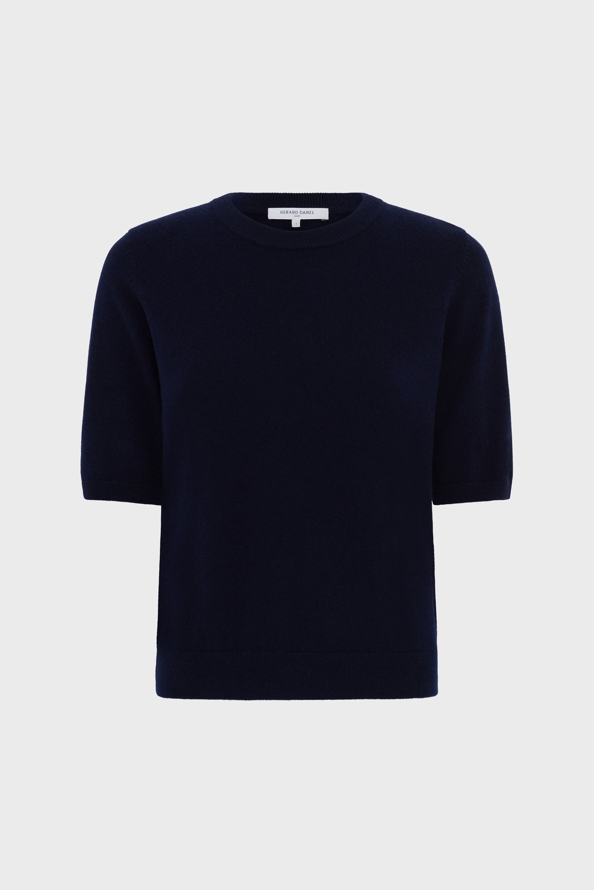 This navy blue short-sleeved sweater made of 100% wool will adapt to all styles, whether chic or casual, and can be worn on any occasion.