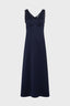 Sleeveless maxi dress fitted under the chest with lingerie-style lace. Made from a navy blue satin feel fabric for a chic, glamorous look.