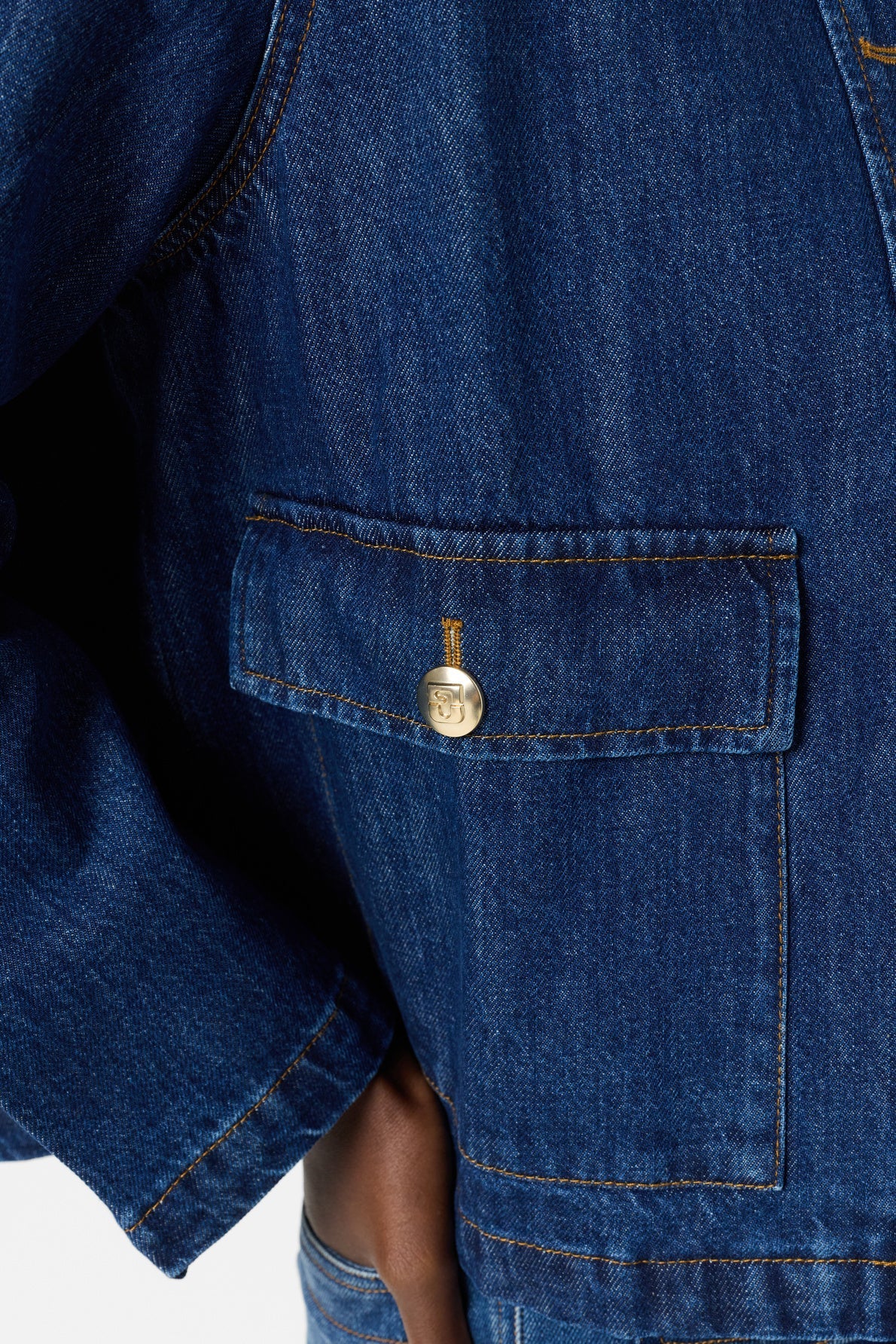 Straight-cut jacket in raw denim with golden buttons, offering a style combining casual and sophistication. It is crafted from 100% cotton.
