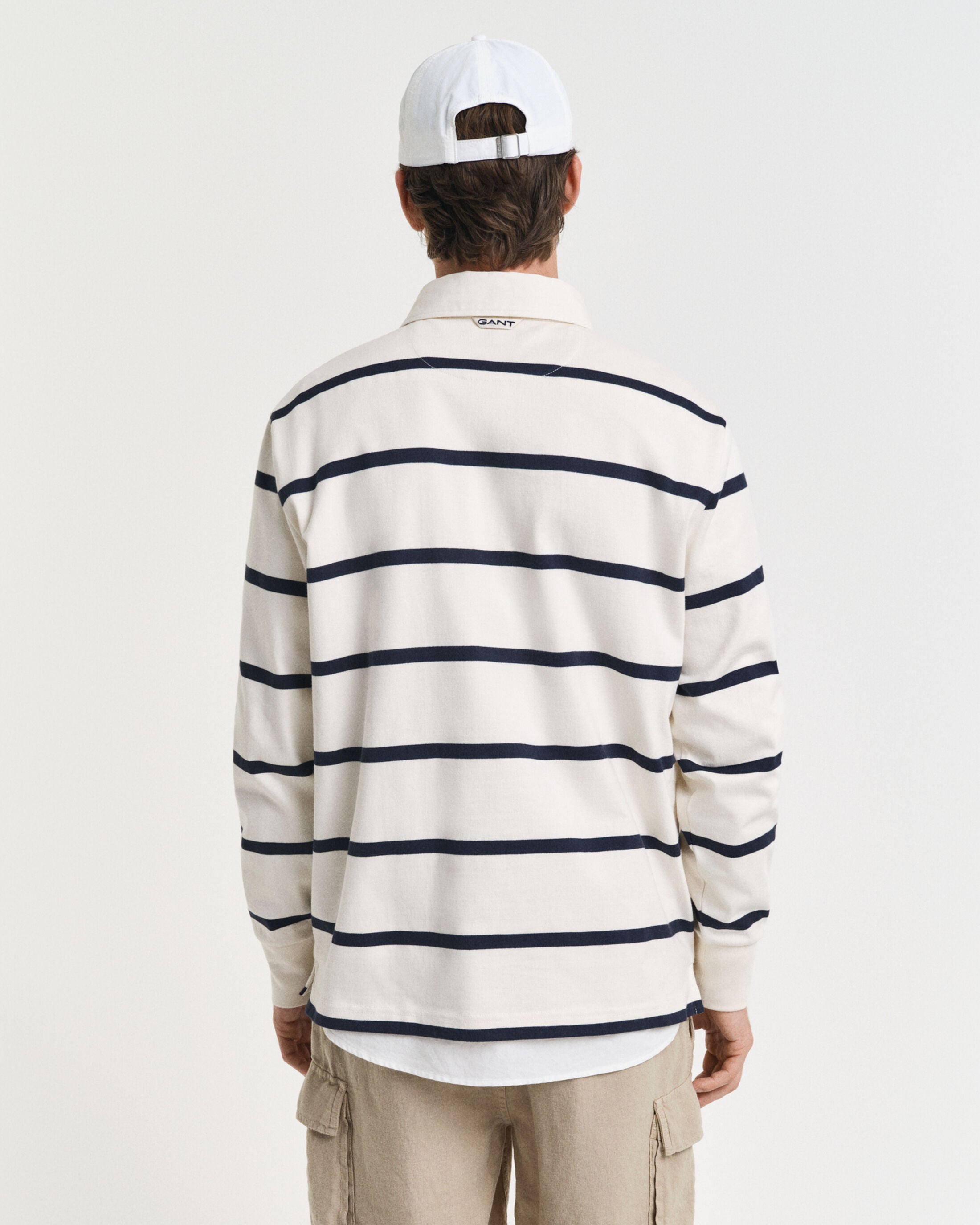 A preppy icon with roots in rugby, the Heavy Rugger's collegiate-cool feel is perfect for almost any occasion. Cut for a regular fit and garment-washed for a soft handfeel, this iteration sports a yarn-dyed stripe design. Crafted from 100% cotton, it features all the classic detailing: a twill collar, ribbed cuffs, a stitched placket with branded rubber buttons and side hem slits. It is finished with our iconic GANT shield graphic embroidered at the chest and our signature locker loop at the back.