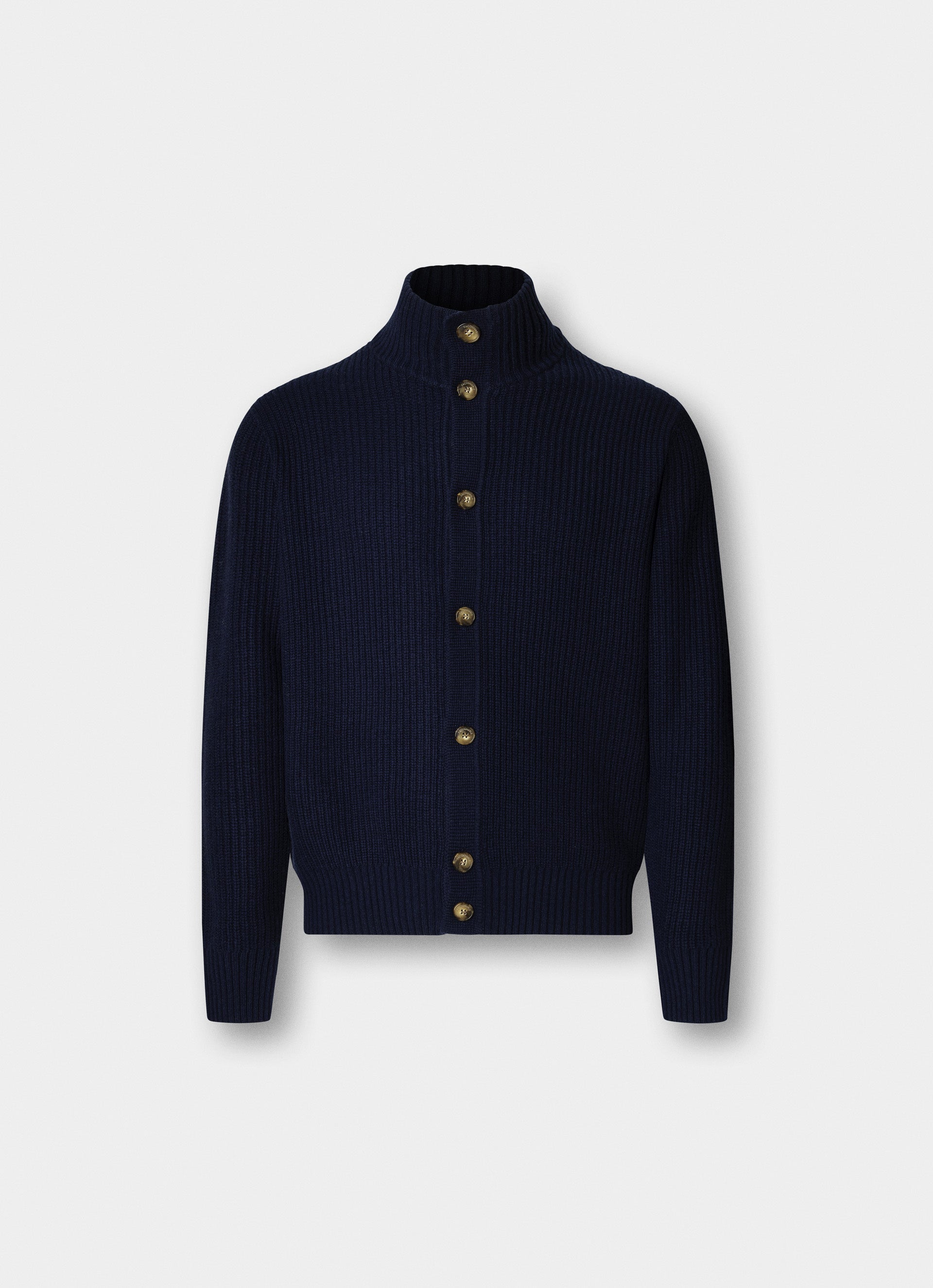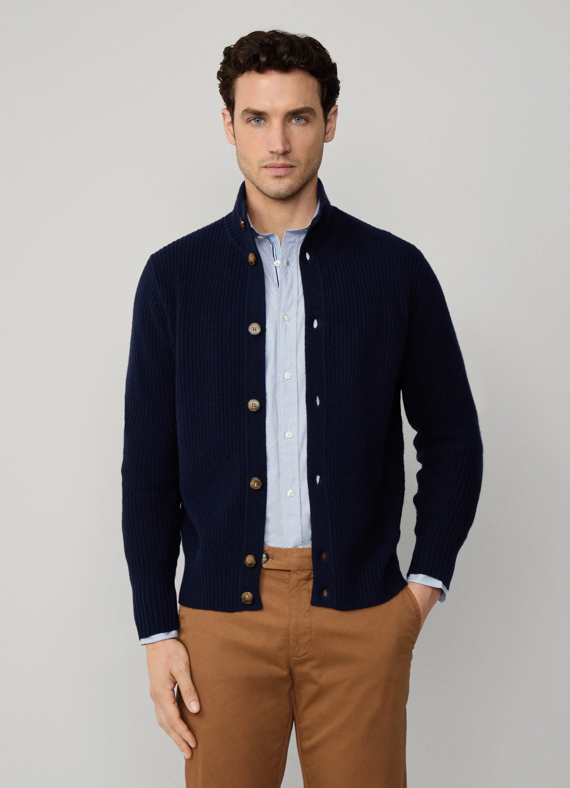 WOOL-CASHMERE RIBBED KNIT CARDIGAN