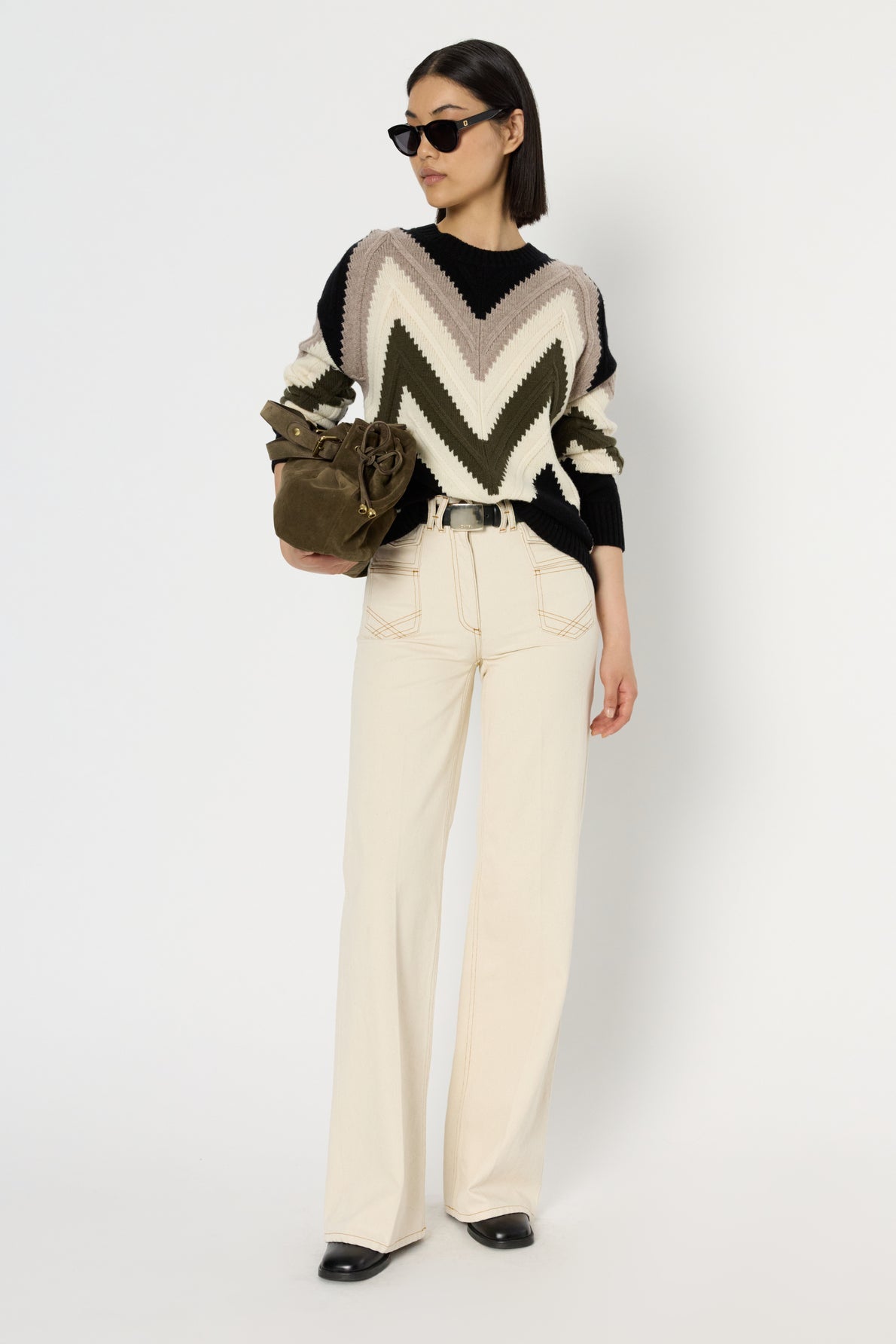 WOOL SWEATER WITH GRAPHIC HERRINGBONE PATTERN - ELISSA